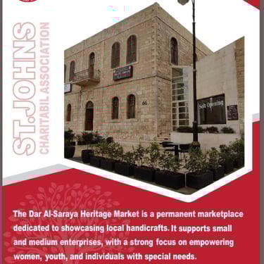 The Ministry of Tourism and the Saint John Charitable Association launched the initiative to convert a historic building into a venue to market local items such as handicrafts and mosaics, to support and empower local groups and disabled people.